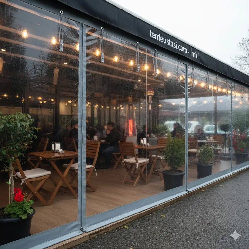 Dört Mevsim Konfor: Soğuk, rüzgar ve yağmur gibi olumsuz hava koşullarından korunarak dış mekanlarınızı yıl boyunca kullanılabilir hale getirir. Isıtıcılarla birlikte kullanıldığında, kış bahçeleriniz veya restoran teraslarınız sıcak ve davetkar bir atmosfere bürünür.